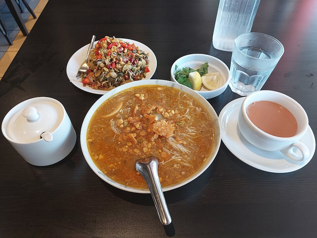 Orderinchaos, Mohinga soup and tea leaf salad A Nyar Tar, CC BY-SA 4.0