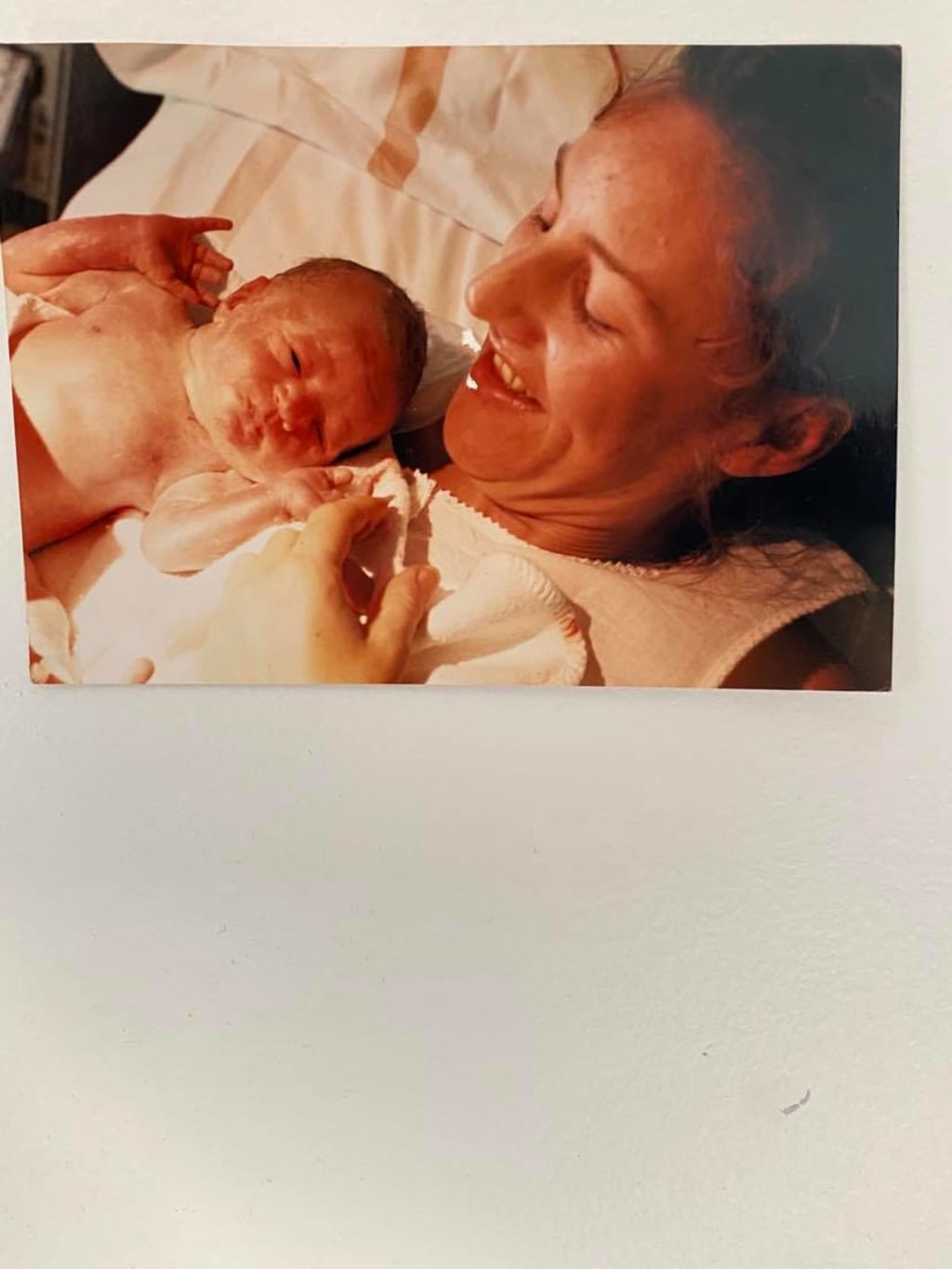 Her room is aglow with soft yellow light. Moths gather around the lamp in the corner, their bodies thudding rhythmically against the shade. You stand in the doorway. Your mother is bent over next to the bed. Her hair clings to the sweat on her face. You can see the pain coursing through her body – she is gasping – clutching at every breath like the summer air is analgesic. Her pregnant belly swells under the pale blue of her nightgown. Your body is a dead weight. You can’t move. Towels, your mother groans. Towels. You ask your legs to carry you to the bathroom. You feel them moving without you – feel your hands reaching into the cupboard under the sink – gathering as many towels as you can carry. You bring them to her bedroom. She is half squatting now, her left-hand clinging to the bedside table. You can see all the veins pressing up through the skin on the back of her hand. You stand again in the doorway, holding the towels to your chest.