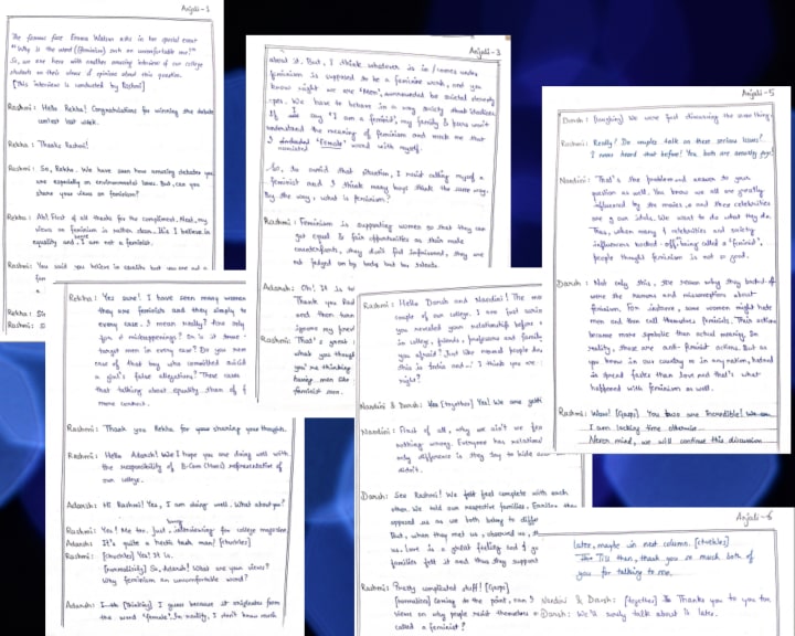 Interviewing my (imaginary) classmates on feminism, sudden creation of a 19-year during college examinations