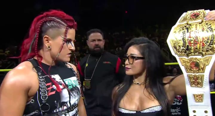 Santino returned to the ring and provided a surprising announcement: Lei Ying Lee, the reigning Knockouts World Champion, would have a different challenger at the Genesis event on January 17. Originally, she was set to defend her title against the now-villainous Dani Luna, but visa issues have prevented her from leaving the UK. Lei Ying Lee entered the ring with her regular tag team partner, Xia Brookside, as Santino made the announcement that an open challenge would occur. Out came the team of Zaria and Sol Ruca (ZaRuca) from NXT, and Sol spoke about the big opportunity, adding that no one deserves this more than Zaria. Not surprised Sol gave the nod to her running buddy, and this was followed by Zaria signing the contract.
