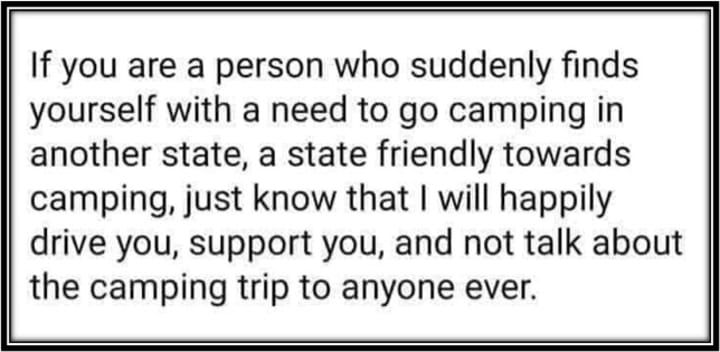 "Camping" isn’t anyone’s first choice for reproductive healthcare. "Camping" isn’t fun or easy or comfortable. But sometimes "camping" is the only choice a woman or girl has, and I will help them do it. If you, or someone you know, needs to go "camping," I am here for you.