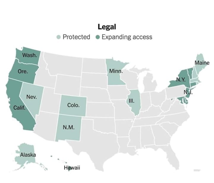 The following map shows (gray states) where women and girls are currently denied the right to make their own reproductive healthcare decisions, and (in green: please note that North Carolina is a green state at this time) the states where women will offer rides for someone in need to "go camping."