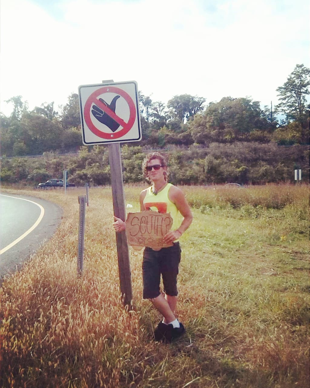A hitchhikers journey begins with a single step; or atleast a flick of the wrist, while supporting a courageous thumb of the wild hearts. Things have been hard for Dreamers lately, but that's not stopping us. It was late Summer, 2014 and the leaves had began to fall in Northern New Hampshire. I found myself at a crossroad in life, stuck between succumbing to the dreaded 9 to 5, or continue following my heart and pursuing my dreams. My bags were packed and I was dropped off in the lower end of Vermont, staring at the trail head of the Appalachian trail.. Strapped with a 60 pound backpack and an acoustic guitar in hand... Little did i know I was about to embark on a journey that would change my life forever. If you have any knowledge of the A.T., you'll know it's no light breezed walk in the park, and three days in, I had discovered that the hard way.. between the constant hills of Vermont and the cold dreary days of rain and darkened skies, my pack was far too heavy, and my body was not conditioned to attend such a sudden feat. I had realized this was growing old rather quickly... That evening around 5 p.m., I had walked to the neighboring town for some supplies and came to gather my thoughts in a dry, warm nook of a strip mall bookstore. Peering out the window, i sat as the cars passed and climbed through the options of my next move... I wasn't ready to accept defeat, but I damn sure wasn't ready to get back on that trail...& my pride at the time was glittered with shiny little trophies from all of my past experiences traveling the country. I'd been bit of a drifter ever since I ran away to Florida in the middle of the night on a greyhound bus at only fifteen years old. Traveling was just in my heart, I longed to see the World. Transforming my mental awareness and seeing new things just continued to thrill me time and time again... So here I sit, staring out onto the on-ramp of Route 120, and that's when it dawned on me, I've never tried hitchhiking before! Hmm... what are the pro's and con's?- I asked myself, wirelessly simulating the parallels of different things that could happen, as if it were a casino lotto machine spinning around a thousand and one times... all is possible, and parallel reality timelines can intersect just from one simple choice or a hello in gesture. I decided; what the hay, let's give it a shot! I finished up my meal, and picked up my pack... It was now dark and you can barely see me under the scattered street lights pressed along this long stretch of road. With a flick of my wrist, I was flyin' that hippie :"Can i get a ride man?" flag. But It wasn't sudden miles and smiles... actually, three hours went by and no one had picked me up yet. For some reason i guess I thought I'd have beginners luck? Maybe I was full of myself. I was just about ready to go find a spot and pitch my tent for the night, but sure as day, I got picked up on my last thumb... Huh... Right when I was about to give up, my prayer was answered... Was this a deeper lesson? In went my bag and guitar, stuffing them into the backseat. It was a bright old man, who was a talented musician and retired from teaching piano at the local schools. He was very kind and we talked about all types of music from classical, to top 40, he even played me some of his stuff from CD. We drove for about an hour on I-91, & there he dropped me off in a big parking lot, where we shared our kind goodbyes and well wishes. it was now around 9:30 p.m... Time for bed. I was spent.. and for the first night in 3 days, it wasn't raining.. my clothes and pack were finally dry, leaving a light hint of mildew on all of my clothing. (always tie your clothes up in a tough garbage bag, and then put it inside your pack.) I found a nice grassy knoll to pitch my tent while listening to the crickets sing the night and I a song. This was nice. & I went to bed with more confidence in my choices. The next morning I woke up feeling great.. I was greeted by the wonderful warming morning sun, and dry land upon my feet. I unzipped the tent door and inhaled a big fresh breath of the clean forest air that was waving behind me. I chugged my whole cantene of water, gave a couple stretches, and began to pack up my tent and camp. You always wanna try to leave the area just as you found it.. (I feel like that's an unwritten code everyone should intuitively know).. I was now in the very top of Massachussets, feeling very optimistic about the day! I had managed to catch a ride with a nice woman who was on her way to work, she looked upper middle class and had a nice SUV. She had picked me up just minutes after a carpool vehicle shouted out to me in passing, "GET A JOB!" I found this very ironic, since that was kinda what I was running from... Yin and Yang? Thinking back to last night where I was rewarded right when I was about to give up.. The classic "Angel on one shoulder, Devil on the other scenario." The lady and I had good casual conversation, & she dropped me off in a cool little college town called Northampton. I sat and had something to eat, sitting on the steps at a Church in the downtown square. I took out my guitar and melodied a couple songs in help with the harmony of the echoing acoustics in the churches infastructure, when a group of 20-something's came strolling by, slowing as they realized i was playing a friendly familiar tune. The head of the group stretches his right foot and plants it towards me as he began snapping his fingers in tune with the beat. Singing out the harmony of the song's chorus, I was rather surprised and pleased how well our voices blended. As the song ended, we said our kind hello's and well greetings, then he asked where I was heading... I really honestly don't know, I replied. South? "Chasin' the sun", I laughed, rubbing my neck. We chatted for a little bit longer and said our farewells, parting separate ways. I was headed back to the on-ramp... and after about 45 minutes, an 18-wheeler truck, moving cargo, offe