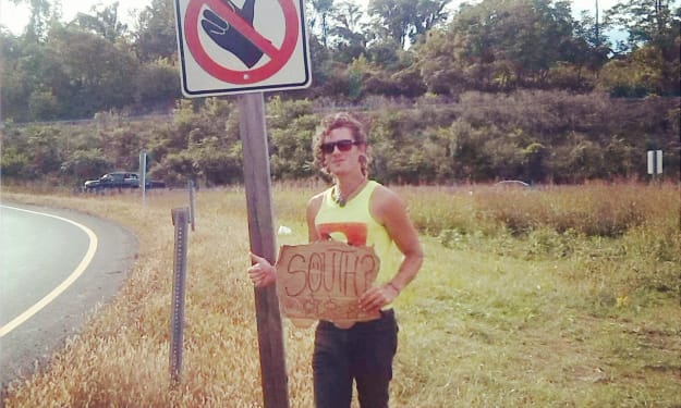 A hitchhikers journey begins with a single step; or atleast a flick of the wrist, while supporting a courageous thumb of the wild hearts. Things have been hard for Dreamers lately, but that's not stopping us. It was late Summer, 2014 and the leaves had began to fall in Northern New Hampshire. I found myself at a crossroad in life, stuck between succumbing to the dreaded 9 to 5, or continue following my heart and pursuing my dreams. My bags were packed and I was dropped off in the lower end of Vermont, staring at the trail head of the Appalachian trail.. Strapped with a 60 pound backpack and an acoustic guitar in hand... Little did i know I was about to embark on a journey that would change my life forever. If you have any knowledge of the A.T., you'll know it's no light breezed walk in the park, and three days in, I had discovered that the hard way.. between the constant hills of Vermont and the cold dreary days of rain and darkened skies, my pack was far too heavy, and my body was not conditioned to attend such a sudden feat. I had realized this was growing old rather quickly... That evening around 5 p.m., I had walked to the neighboring town for some supplies and came to gather my thoughts in a dry, warm nook of a strip mall bookstore. Peering out the window, i sat as the cars passed and climbed through the options of my next move... I wasn't ready to accept defeat, but I damn sure wasn't ready to get back on that trail...& my pride at the time was glittered with shiny little trophies from all of my past experiences traveling the country. I'd been bit of a drifter ever since I ran away to Florida in the middle of the night on a greyhound bus at only fifteen years old. Traveling was just in my heart, I longed to see the World. Transforming my mental awareness and seeing new things just continued to thrill me time and time again... So here I sit, staring out onto the on-ramp of Route 120, and that's when it dawned on me, I've never tried hitchhiking before! Hmm... what are the pro's and con's?- I asked myself, wirelessly simulating the parallels of different things that could happen, as if it were a casino lotto machine spinning around a thousand and one times... all is possible, and parallel reality timelines can intersect just from one simple choice or a hello in gesture. I decided; what the hay, let's give it a shot! I finished up my meal, and picked up my pack... It was now dark and you can barely see me under the scattered street lights pressed along this long stretch of road. With a flick of my wrist, I was flyin' that hippie :"Can i get a ride man?" flag. But It wasn't sudden miles and smiles... actually, three hours went by and no one had picked me up yet. For some reason i guess I thought I'd have beginners luck? Maybe I was full of myself. I was just about ready to go find a spot and pitch my tent for the night, but sure as day, I got picked up on my last thumb... Huh... Right when I was about to give up, my prayer was answered... Was this a deeper lesson? In went my bag and guitar, stuffing them into the backseat. It was a bright old man, who was a talented musician and retired from teaching piano at the local schools. He was very kind and we talked about all types of music from classical, to top 40, he even played me some of his stuff from CD. We drove for about an hour on I-91, & there he dropped me off in a big parking lot, where we shared our kind goodbyes and well wishes. it was now around 9:30 p.m... Time for bed. I was spent.. and for the first night in 3 days, it wasn't raining.. my clothes and pack were finally dry, leaving a light hint of mildew on all of my clothing. (always tie your clothes up in a tough garbage bag, and then put it inside your pack.) I found a nice grassy knoll to pitch my tent while listening to the crickets sing the night and I a song. This was nice. & I went to bed with more confidence in my choices. The next morning I woke up feeling great.. I was greeted by the wonderful warming morning sun, and dry land upon my feet. I unzipped the tent door and inhaled a big fresh breath of the clean forest air that was waving behind me. I chugged my whole cantene of water, gave a couple stretches, and began to pack up my tent and camp. You always wanna try to leave the area just as you found it.. (I feel like that's an unwritten code everyone should intuitively know).. I was now in the very top of Massachussets, feeling very optimistic about the day! I had managed to catch a ride with a nice woman who was on her way to work, she looked upper middle class and had a nice SUV. She had picked me up just minutes after a carpool vehicle shouted out to me in passing, "GET A JOB!" I found this very ironic, since that was kinda what I was running from... Yin and Yang? Thinking back to last night where I was rewarded right when I was about to give up.. The classic "Angel on one shoulder, Devil on the other scenario." The lady and I had good casual conversation, & she dropped me off in a cool little college town called Northampton. I sat and had something to eat, sitting on the steps at a Church in the downtown square. I took out my guitar and melodied a couple songs in help with the harmony of the echoing acoustics in the churches infastructure, when a group of 20-something's came strolling by, slowing as they realized i was playing a friendly familiar tune. The head of the group stretches his right foot and plants it towards me as he began snapping his fingers in tune with the beat. Singing out the harmony of the song's chorus, I was rather surprised and pleased how well our voices blended. As the song ended, we said our kind hello's and well greetings, then he asked where I was heading... I really honestly don't know, I replied. South? "Chasin' the sun", I laughed, rubbing my neck. We chatted for a little bit longer and said our farewells, parting separate ways. I was headed back to the on-ramp... and after about 45 minutes, an 18-wheeler truck, moving cargo, offe