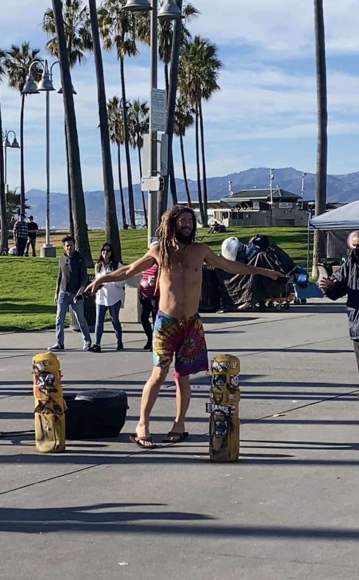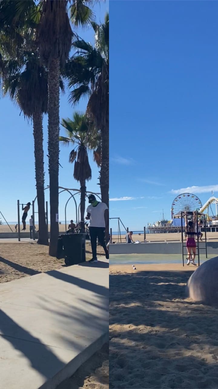 What Malibu lacked, Santa Monica definitely made up for. From the Santa Monica boardwalk, to a lively Muscle Beach, we were thoroughly entertained both days we spent there. You’re going to want to stay at the former California Hotel, which is now the Ocean View Hotel, assuming it's still operating with the covid discount. Our room was about $110, and we noticed a poster in the room showing the normal price of almost $700. The knobs in the shower were unclear and difficult to regulate, and there was no place to put soap, shampoo, and conditioner there as well. They did however have free WIFI which I appreciated. The room was very adorably decorated with a surfer aesthetic, which was a really nice touch. Muscle Beach, the origin of the physical fitness boom was bustling with local body builders, skateboarders, and bikers. It had a life size chess board, but because of covid, the pieces were put away. We were about a 15 minute drive away from Venice Beach, so after enjoying a cup of coffee, that’s where we went.