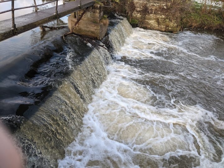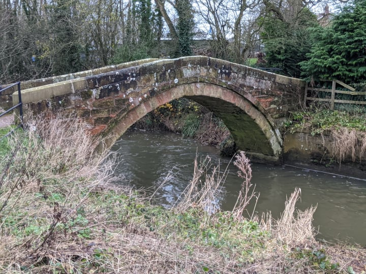 The river / stream Cod Beck runs through Thirsk and I often follow this from the weir , through the parkland , to the bridges where the ducks congregate then out to the farmland where you can cross Cod Beck via a rickety iron bridge and then walk up through more fields to come out close to St Oswald's Church.