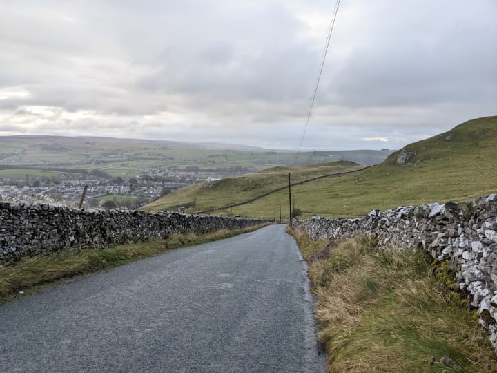 This week was my third time, and though the walk is hard, you do get some great views of the town of Settle and the surrounding countryside as you walk up, plus there are a lot of sheep that often come to the gate to see you.
