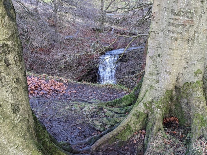 The first time I tried to find it I made the mistake of using Google Maps and ended up halfway across a very wet field before giving up and returning to the road. Continuing along the road I heard a distant roar from a group of trees and knew that I was on the track to see Scaleber Foss.