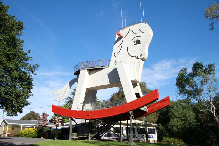 At the Big Rocking Horse, there are animals that love to interact with visitors such as kangaroos, wallabies, alpacas, sheep, goats, peacocks, emus, and other kinds of animals and birds. There is a picnic area to enjoy but no barbeques are allowed due to the adjacent wooded bush park.