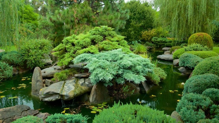 The gardens are divided into two traditional areas, known as sensui and kare senzui. The sensui area is a mountain and lake garden and has interesting rock formations. The pond in the center has lots of large goldfish and perhaps a turtle or two.