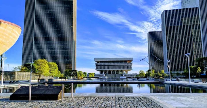 The Governor Nelson A. Rockefeller Empire State Plaza is a complex of state government buildings. It is also known as the Empire State Plaza and at times South Mall. There are many different buildings that make up this complex among them the Mayor Erastus Corning 2nd Tower, the Robert Abrams Building for Law and Justice, and the Swan Street Building. The Corning Tower on the plaza is a skyscraper and state office building with an observation deck on the 42nd floor. It is also known as the Mayor Erastus Corning 2nd Tower. Erastus was mayor of Albany from 1941 to 1983. At 589 feet in height, this is the tallest building in the state of New York outside of NYC. The observation deck offers great views of the city and the Hudson River.
