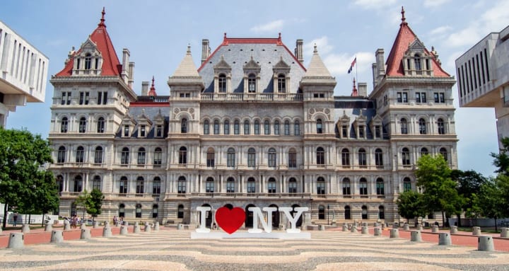 An impressive building the New York State Capitol houses the New York State Legislature and sits prominently on the Empire State Plaza in Capitol Park. It was built between 1867 and 1899. The ground floor features the Classical Romanesque style, the second and third floors the Renaissance Classical style, and the fourth and roof floors the Victorian Romanesque style. The building is a National Historic Landmark and is listed on the U.S. National Register of Historic Places. You can book a tour.