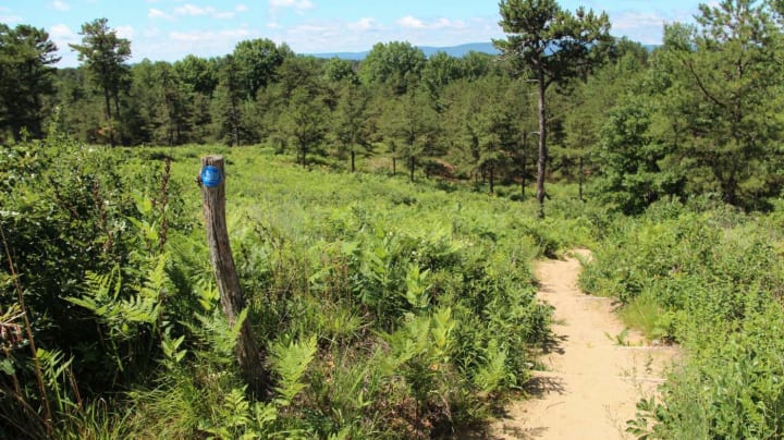 The Albany Pine Bush Preserve is a nature preserve known for its rare inland pine-barren ecosystem. The terrain consists of pine-scrub oak barrens, sand dunes, hardwood swamps, and forests, ponds, and deep ravines. Among the wildlife here are coyotes, deer, foxes, hawks, owls, and an endangered butterfly known as the Karner blue butterfly. There are more than 18 miles of trails and activities here are biking, cross-country skiing, hiking, and horseback riding. The Discovery Center has interactive displays and indoor and outdoor classrooms.