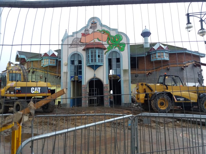 This is one of the former attractions of Rhyl. Presumably some sort of funhouse—the place where fun is meant to be experienced is now restricted to public and on the verge of destruction (what do you mean 'It’s not symbolic?').