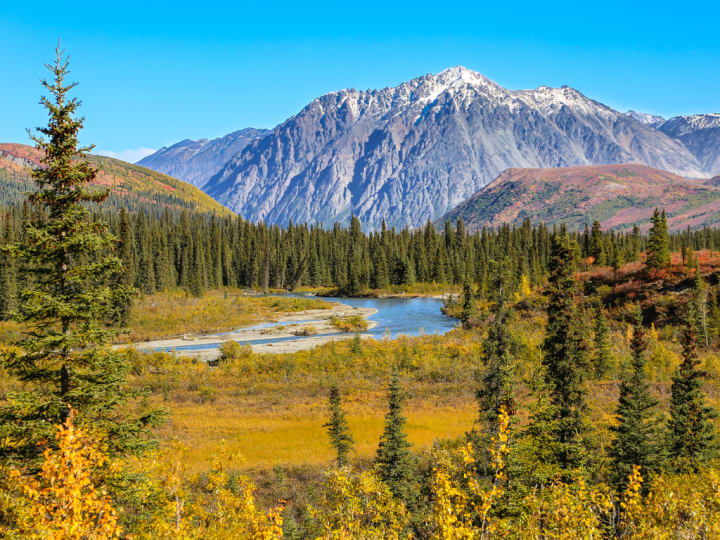 The park has wide river valleys, tundra, high alpine ranges, and glacier-draped mountains. It is located midway between the Alaskan cities of Anchorage and Fairbanks and easily accessed by the Alaska Railroad. There is a single road which leads into the park.
