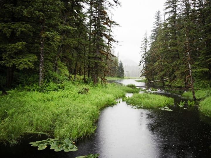 Along the coastal passage stretches the Tongass National Forest which includes islands, mountains, glaciers, ice fields, fjords, and waterfalls. Within the forest is the Prince of Wales Island which is one of the largest islands in the US. This area is inhabited by the Tlingit, Haida, and Tsminshian people.