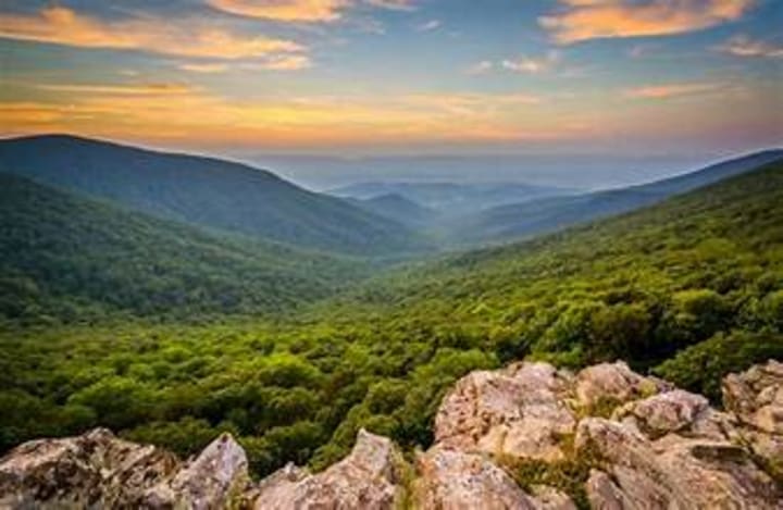 Shenandoah National Park protects portions of the Blue Ridge Mountains. Skyline Drive runs the length of the park and is the northern continuation of the Blue Ridge Parkway.