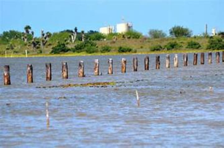 During the Mexican-American War, a floating bridge was built across the bay to transport medical supplies, and some of it can be seen today.