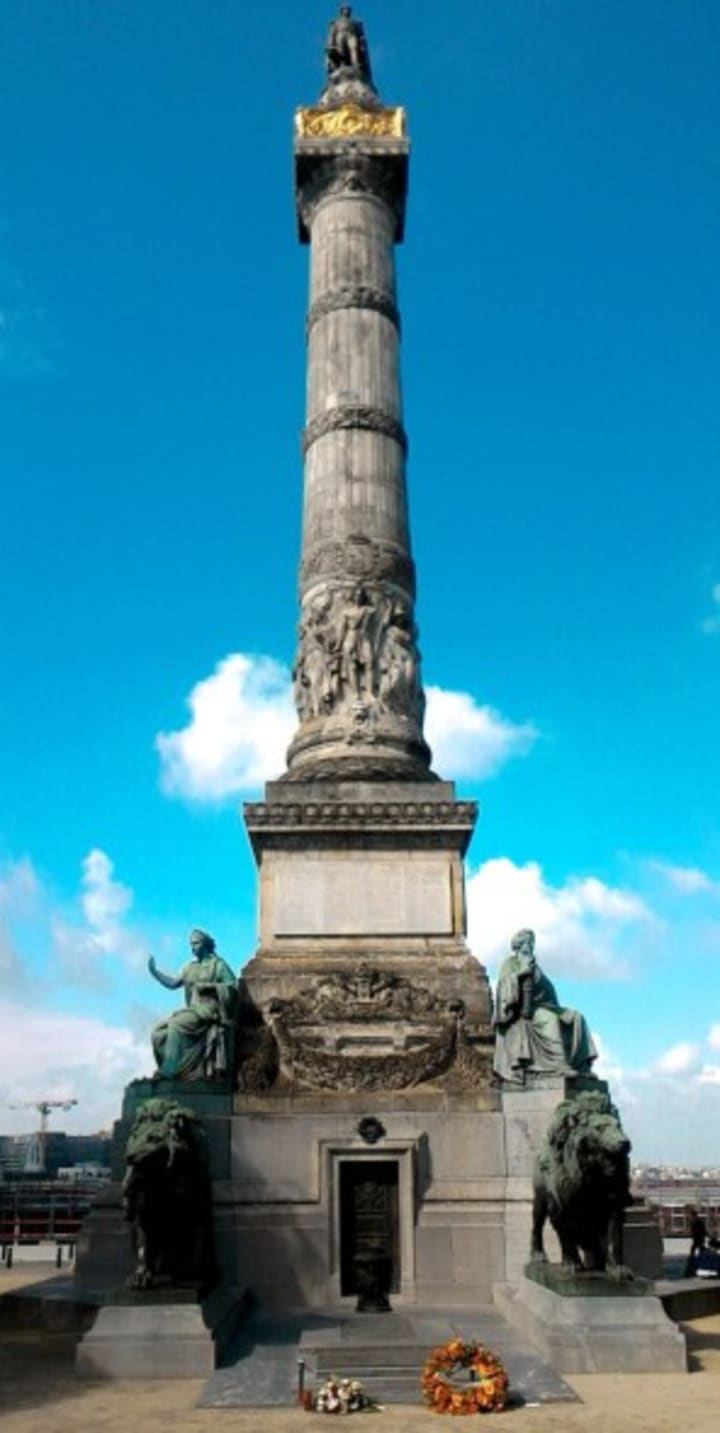 Brussels has a 25m tall version of Nelson’s Column known as the Colonne du Congres. This monolith dating from the 1850s is topped by a gilded statue of King Leopold I. It commemorates the Belgian constitution of 1831. Around its base are four female figures representing the four constitutionally upheld freedoms of religion, association, education and the press. Between two bronze lions is an eternal flame that honors Belgian victims of the two World Wars.