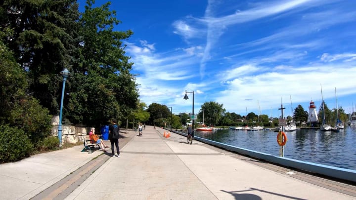 Port Credit is located on Lake Ontario at the southern end of Mississauga in the Canadian province of Ontario. Along here are many walking trails stretching along the waterfront. The area has some of the best parks. There are beautiful lake views and on clear days you can see the Toronto skyline.