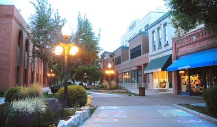 Last Chance Gulch just south of Sixth Street is a landscaped pedestrian mall. You can see many historic buildings and statues.