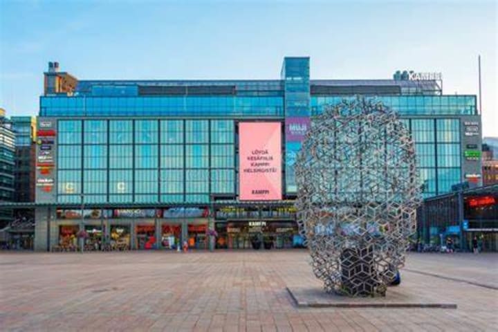 The chapel is in a corner right by the entrance to the Kamppi Shopping Center.