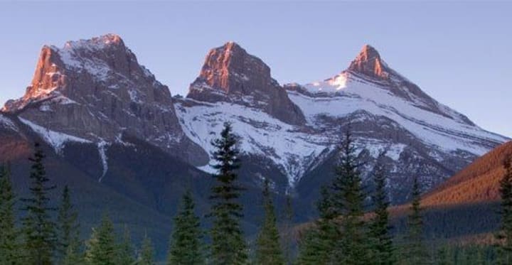 At Canmore, you can enjoy seeing the snow-capped Three Sisters, a group of mountain peaks.