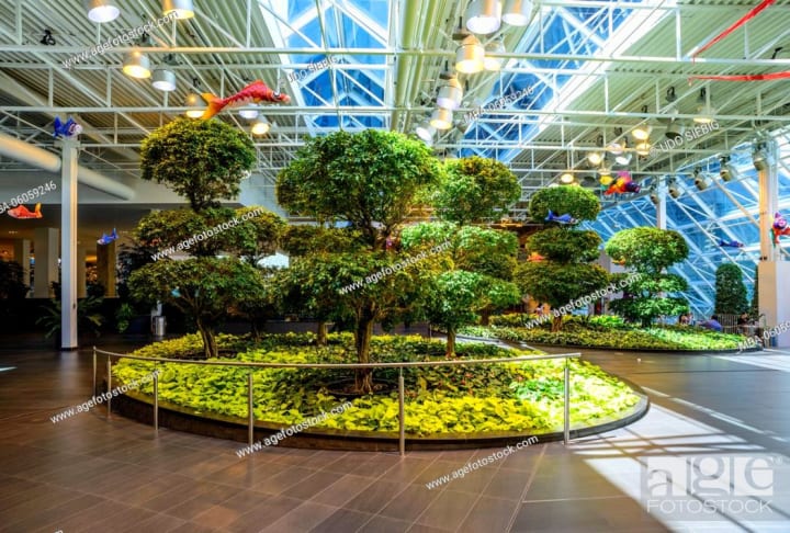 Devonian Gardens are indoor gardens with 550 trees, sculptures, fish ponds, fountains, and a 900-square-foot living wall. There are about 10,000 plants.
