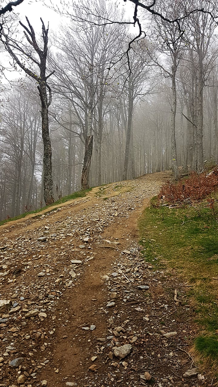 We were so happy, 'cause we didn’t know that the 5 km long downhill part that was coming would be a bumpy ride as well. There’s 2 way down, one is through the woods with a very rocky path, the other is 800 m longer but much easier apparently. Well, we ended up in the fucking woods, of course. To be honest, the visibility was kind of zero and I didn’t even realize where a turn to the other easier path was. I didn’t even see when we crossed the French-Spanish border, although there should have been a rock there saying Navarra. There was an emergency point in the woods somewhere with a map, and that’s when we realized…