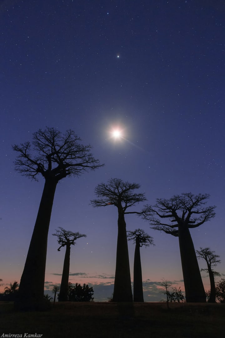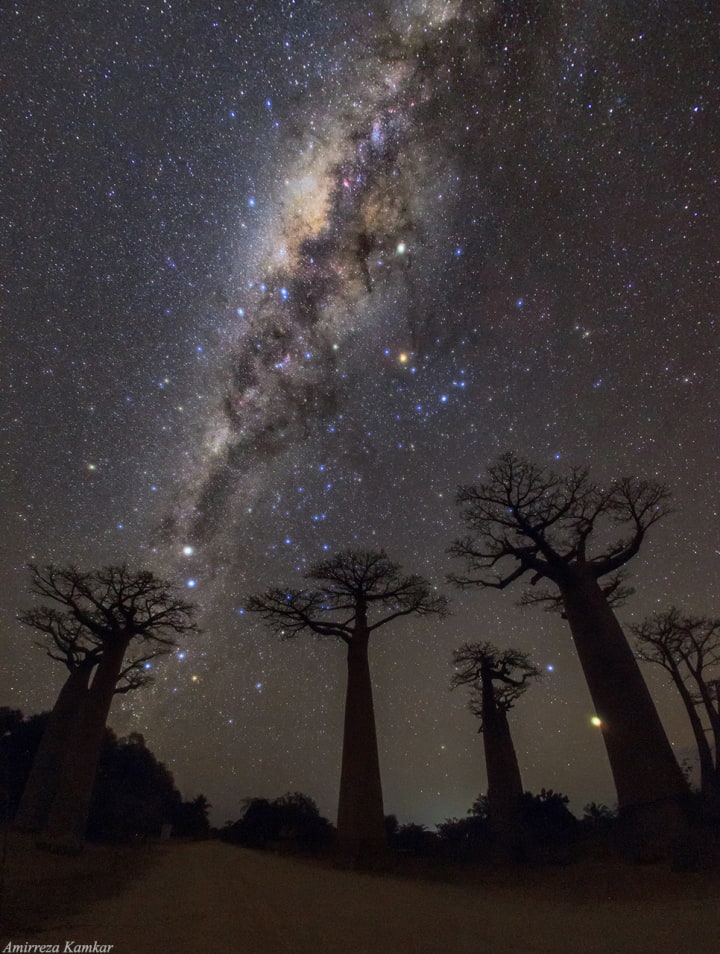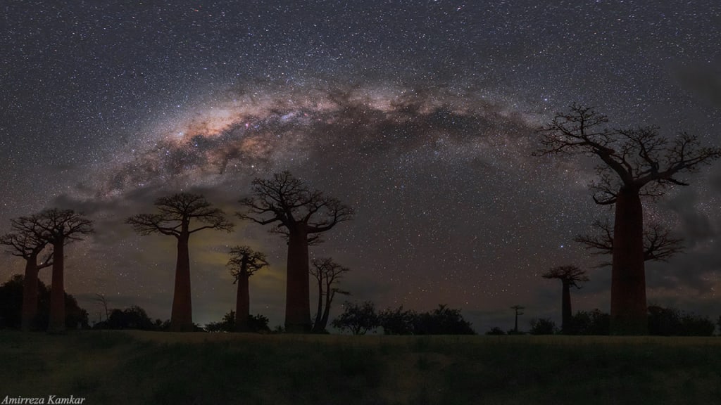 Glorious milkyway over Baobab trees in Madagascar. Credit: Amirreza Kamkar