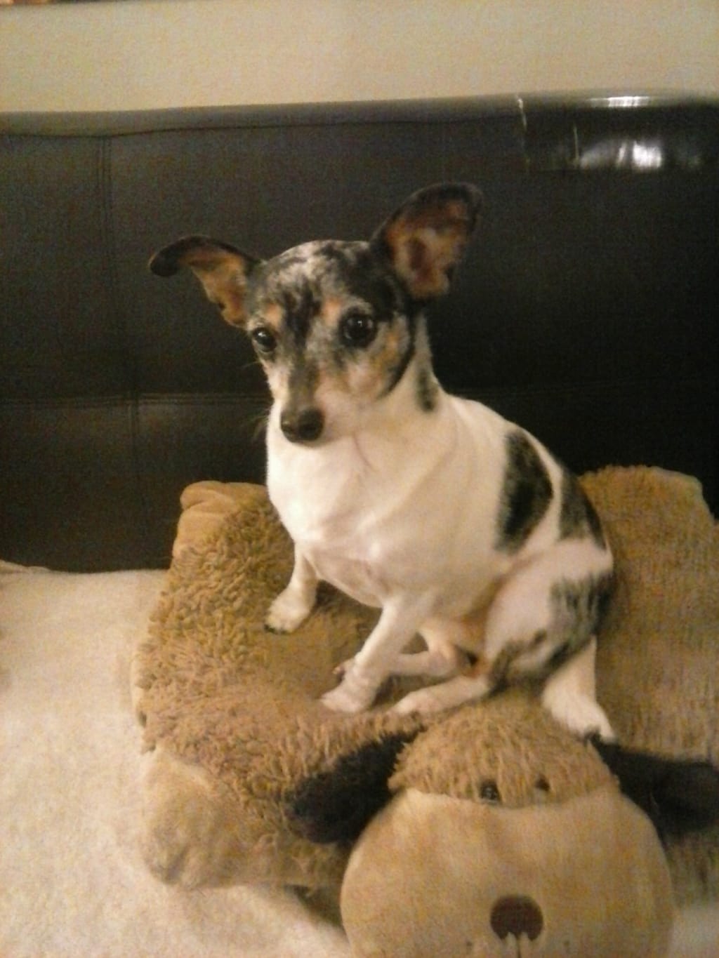 Today i am here to write about my wife's little rat terrier Diamond. We got her in 2012 as a rescue dog. She was very shy and timid at first , as she got use to us she became this little bundle of joy and love. My wife has a lot of health issues: fibromyalgia, PDSD, anxiety, multi-chemical sensitivity and a feeding tube. So Diamond filled a void in her life because she was unable to have her own kids. She was a great step parent to my girls , she was just looking for more. Well this little girl filled it for her, she give my wife so much attention, love and to top it off she has a big bold beautiful personality to boot. Diamond showed us kindness, happiness, compassion and undictional love.