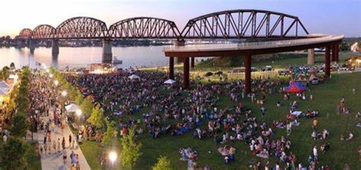 Kentucky Waterfront Park stretches along the Ohio River in downtown Louisville, Kentucky. Your walk will give you fantastic views of the river and the city.
