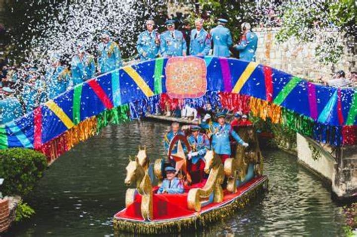 In the springtime, this is the venue for the Fiesta San Antonio with the River Parade featuring floats with flowers on the river.