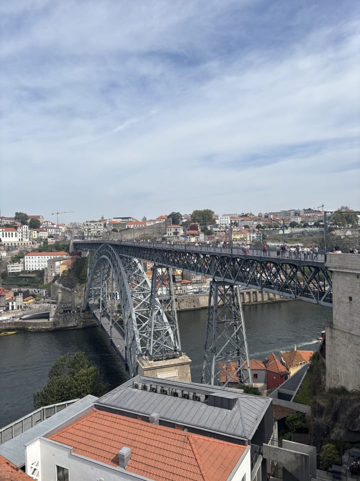 We then walked towards Dom Luís bridge, which we first crossed from the top where the trams ride. On the bridge you have a beautiful view of Porto. A day in Porto would not be complete without eating francesinha. This is a sandwich filled with various types of meat (you usually get to choose your type of meat), melted cheese, and the sandwich is almost drowning in a beer-and-tomato sauce. You can eat this delicacy when you walk down to the water from Dom Luís bridge.
