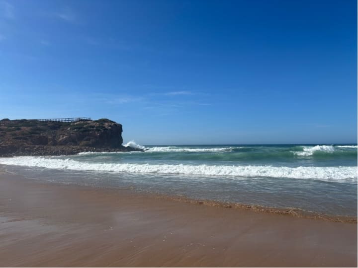 Before leaving Odeceixe we walked for about 8km along the fisherman's trail, which was a beautiful hike. We then drove onto Aljezur. We spent some time exploring the town (Castelo de Aljezur and Mercado Municipal are worth the visit) and then headed to Praia da Bordeira, which is a beach covered in dunes. It's quite the hike to get to the water, you have to cross a river first (which is luckily not very deep). The river is again the place to be for swimmers, because the waves in the sea are high.