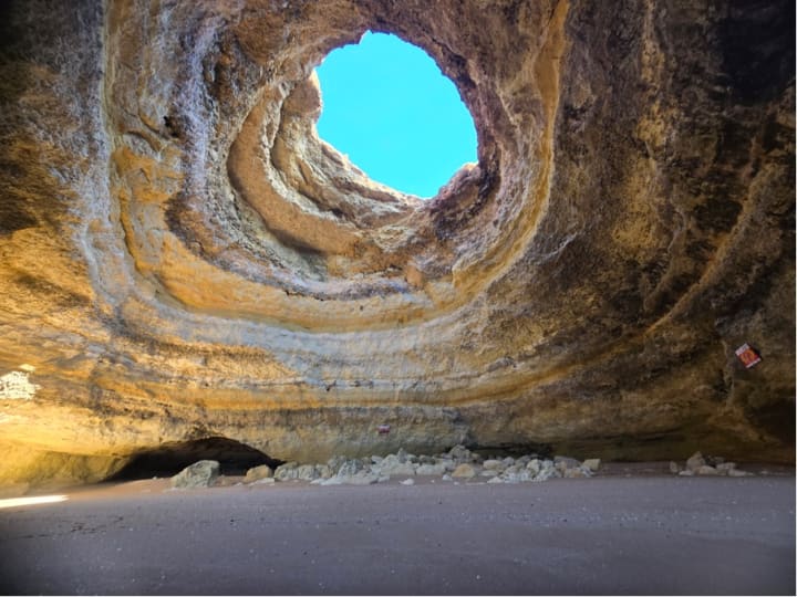 On day seven we drove to Faro. We first stopped for a kayak ride towards Benagil cave, which was on our bucket list. Many people visit the cave by kayak so you will definitely not be alone there, but it's a very unique sight. Next to the Benagil caves, you also have the opportunity to visit some other sights on the water. The total kayak ride took us about 1 hour and 45 mins. We did not get too tired while kayaking at sea, which is something that we were initially afraid of.