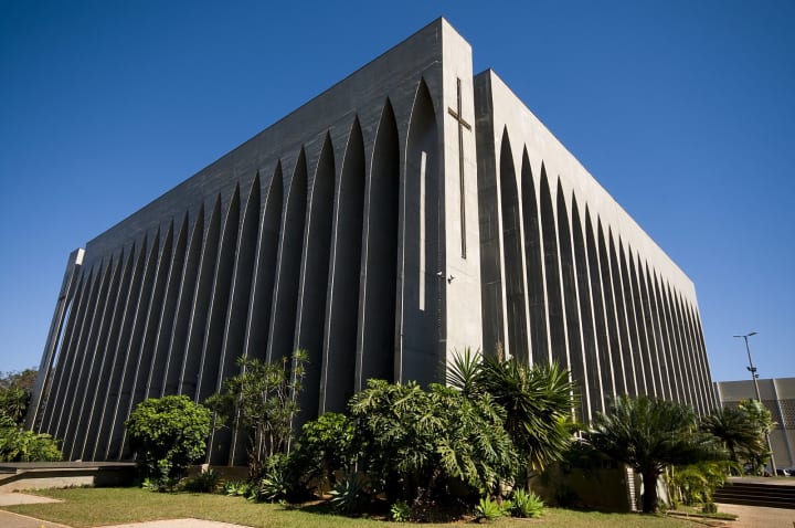 Catedral Metropolitana Nossa Senhora Aparecida is the city’s most famous landmark. This is a unique circular cathedral completed in 1970. It has 16 curved concrete columns that rise up, creating a crown that surrounds a glass roof. Outside are four large statues that represent the Four Evangelists.
