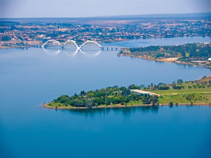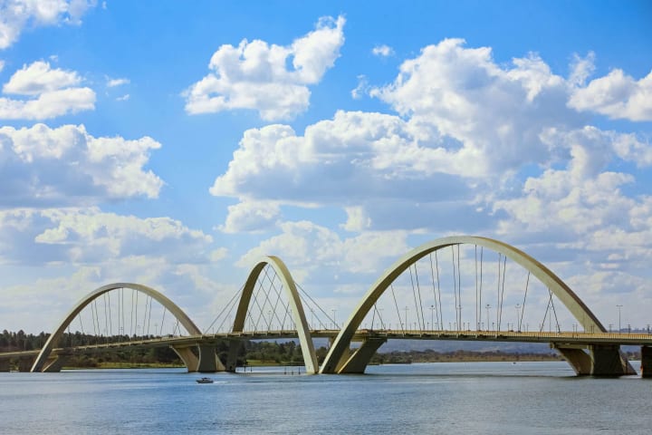 The Ponte Juscelino Kubitschek better known as Ponte JK is a concrete and steel bridge stretching across the lake, supported by three crisscrossing arches, towering over 60 meters above the water. Since its completion in 2002, the bridge has received several architectural awards. At night it is accented by floodlights.