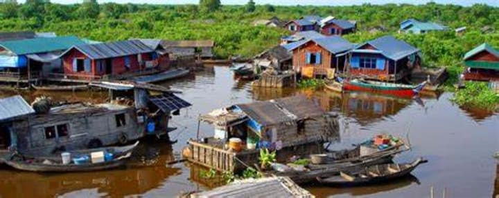 Tonlé Sap is Cambodia's most important waterway and Southeast Asia's largest freshwater lake. As well as being an important source of food and a vital tool for Cambodian irrigation, the lake itself is home to 170 floating villages that depend on fishing for their livelihood, with homes built directly on the water. The houses, shops, churches, schools, and temples of these villages are built on rustic buoy foundations of lashed-together barrels and bamboo, and all transport is by boat. They're a fascinating place to spend a day exploring.