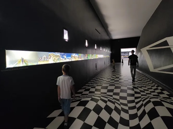 We received a warm greeting from a singing robot, and subsequently, we ventured down a mesmerizing black-and-white corridor leading to the captivating exhibitions.