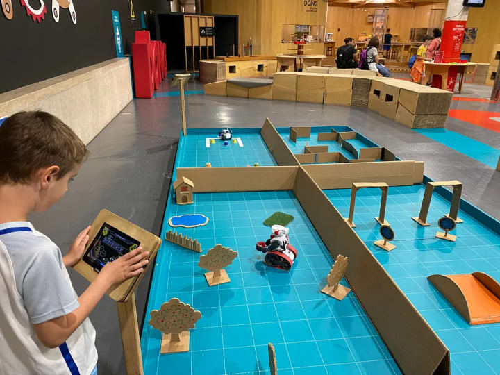 Our children had an amazing time experimenting with a variety of tools, engaging with programmed robots at Robotika, interacting with wind vents, and discovering the wonders of doodle machines!