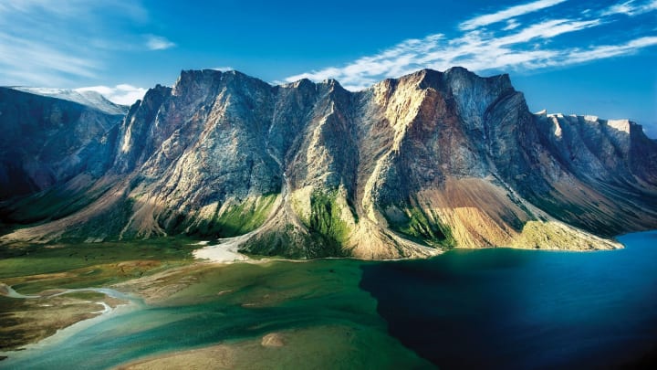 Torngat Mountains National Park is located at the northernmost tip of Newfoundland and Labrador. It faces east toward Greenland. The park has no roads or signage. The coastline is jagged with fjords and mountain islands with the tallest peaks in Canada.