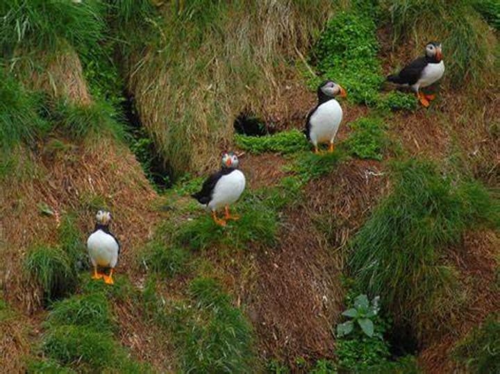 The four islands of the Witless Bay Ecological Reserve are the nesting sites for over 260,000 pairs of puffins. This is the largest Atlantic puffin colony in North America. Puffins are the province's official birds. Boat tours give visitors up-close looks.