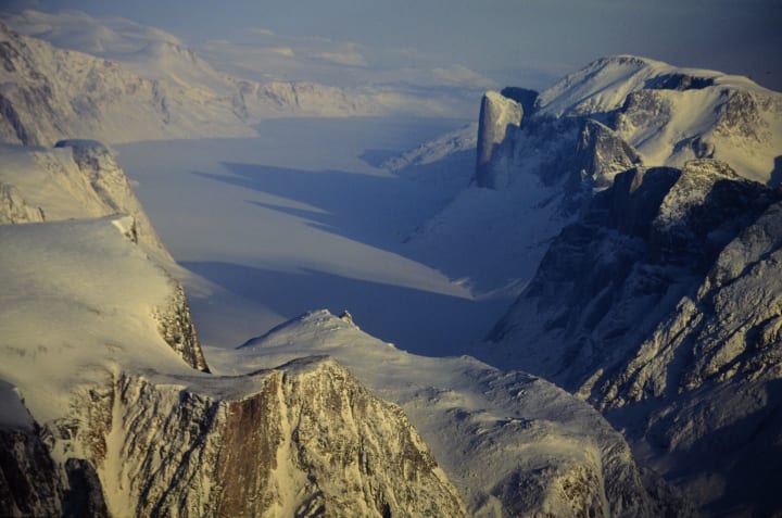 The landscape has broad valleys and rugged mountains. Mount Asgard is quite impressive. You can engage in extreme adventures while hiking. Among the best experiences is on Mount Thor, a 1,675-meter-tall mountain peak known for rock climbing.