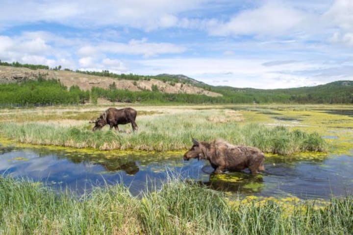 The Yukon Wildlife Preserve is home to a lot of interesting wildlife. The preserve is located only 25 minutes from downtown Whitehorse. The staff at the preserve takes care of injured wild animals, nursing them back to health, and releasing them back into the wild. Here you can learn about many different species of Arctic and boreal animals. You can tour the facility by a three-mile viewing loop on foot, by skis, by snowshoes, or on a guided bus. Among the animals you can see are caribou, lynx, elk, bison, and others. These animals live in distinct natural habitats from wetlands to cliffs.