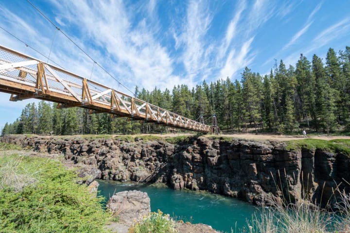 Miles Canyon once attracted gold seekers. Many of these gold seekers found it difficult to navigate through the rushing whitewater of the Yukon River. Today after the building of a hydroelectric dam the water flows more slowly. A suspension bridge was built in 1922 connecting the two 50-foot sides of the canyon and offering fantastic views of the canyon. There are trails for hiking, mountain biking, and cross-country skiing. You can see a variety of wildlife.