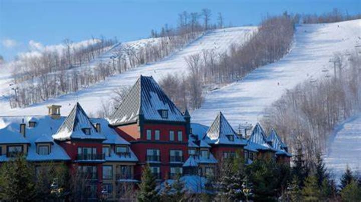Blue Mountain Resort is located just outside the town of Collingwood on the shores of Georgian Bay. It is among the most popular ski resorts in Ontario. The resort is open year-round offering summer activities of rock climbing, ziplining, hiking, and mountain biking.