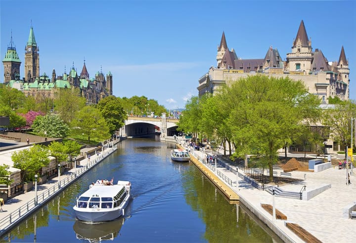 Take the Rideau Canal Cruise on a 100 percent electric-powered passenger vessel. It passes by top attractions like the Chateau Laurier National Arts Centre and the Canadian Museum of Nature.