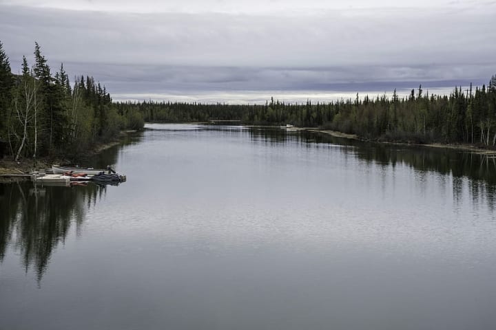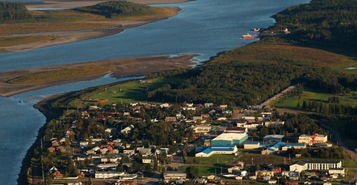 Hay River is located on the southern bank of Great Slave Lake and is the southernmost port on the Mackenzie River System. It was home to the First Nations people and became the first Hudson's Bay Company trading post in 1868. It is mostly a community of fishermen. You can see little wooden houses of the Old Town at the mouth of the Hay River.