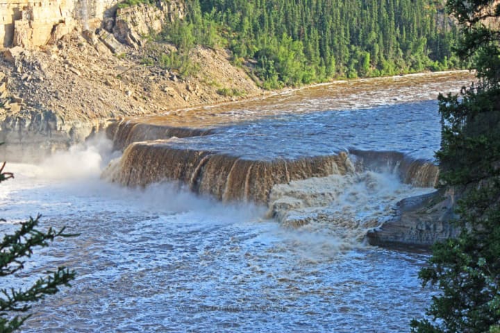 The South Nahanni River tumbles over the 90-meter precipice of Virginia Falls.